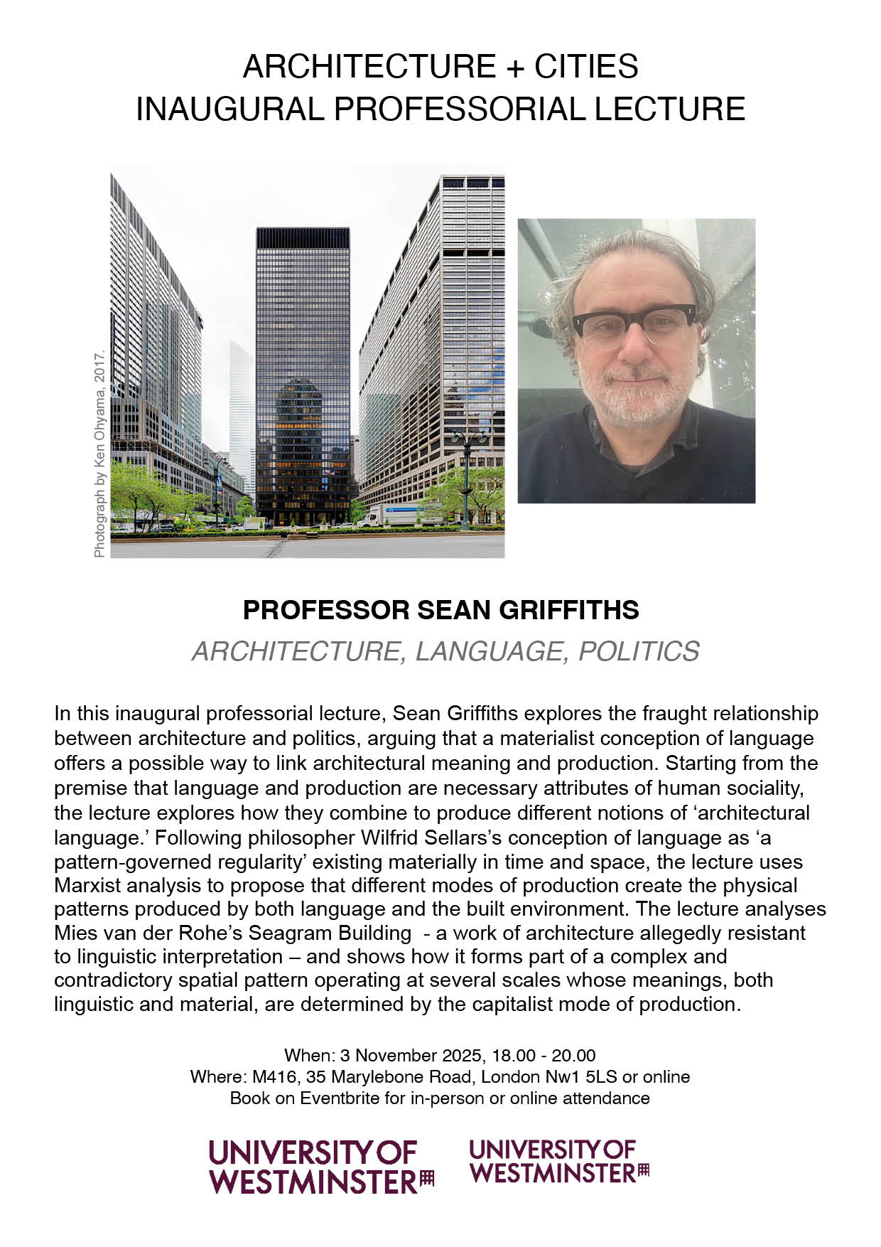 The event will be in room MG14, Marylebone Hall, at 18:00. Drinks reception to follow. Registration via Eventbrite. All welcome.